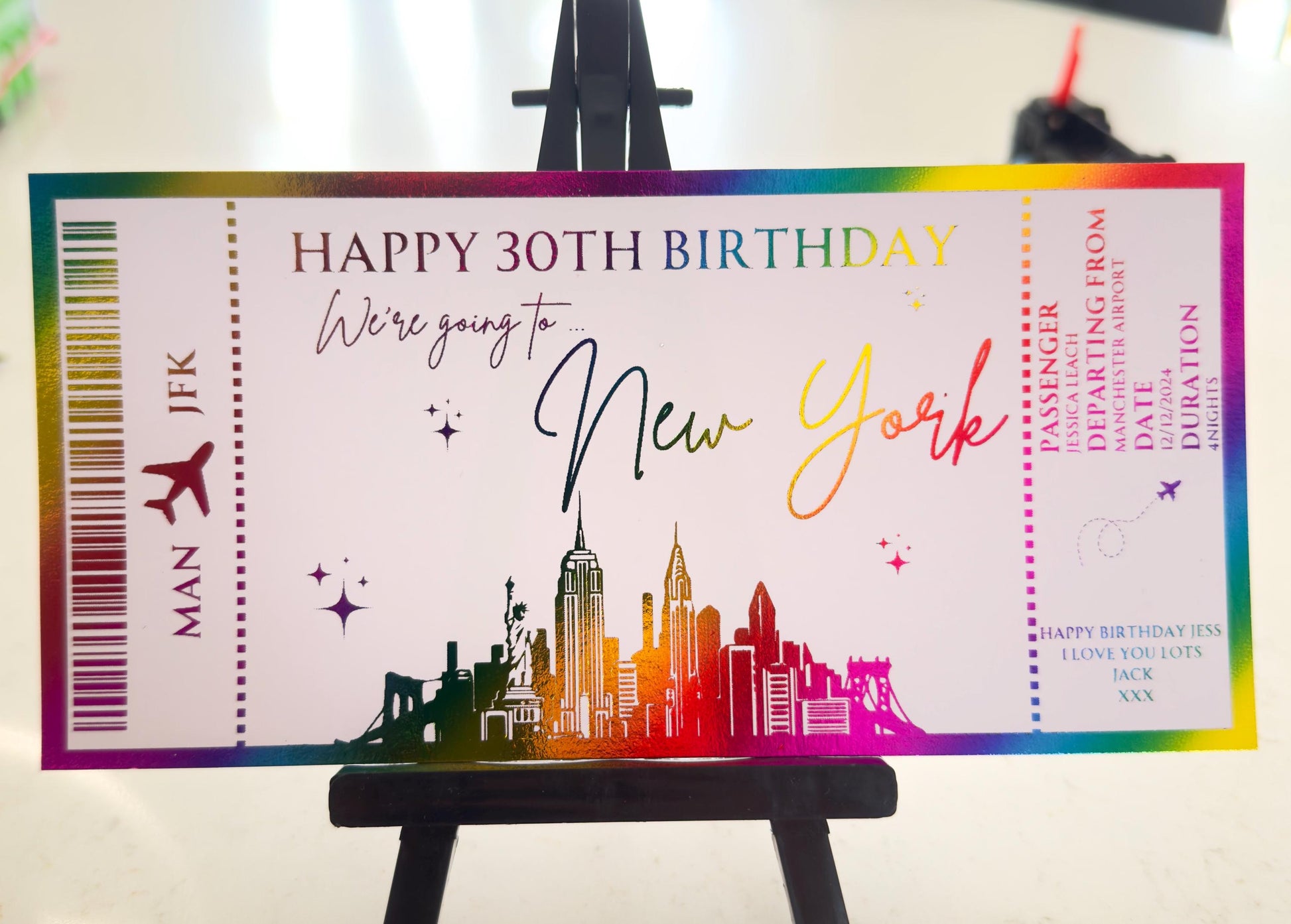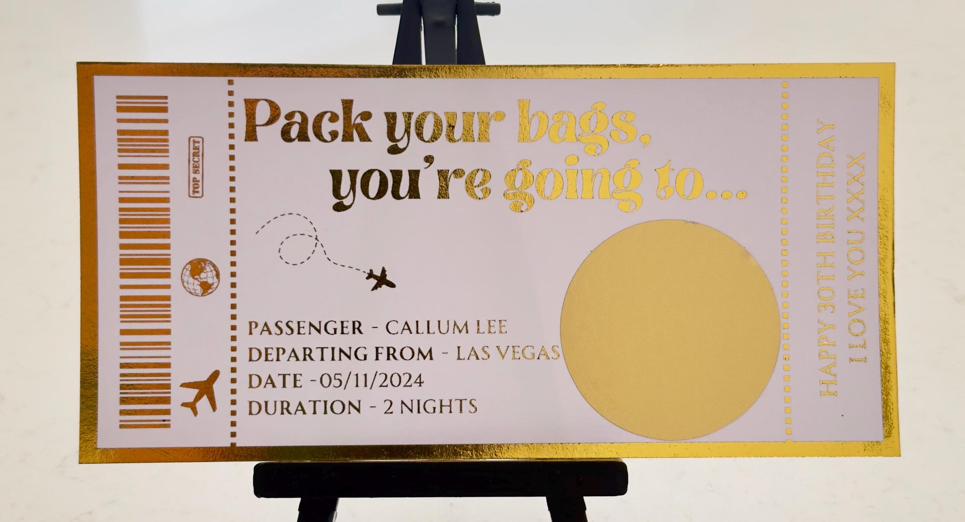 Scratch and reveal ticket - Personalised foil ticket, custom boarding pass, foil voucher, destination reveal, souvenir ticket, show ticket