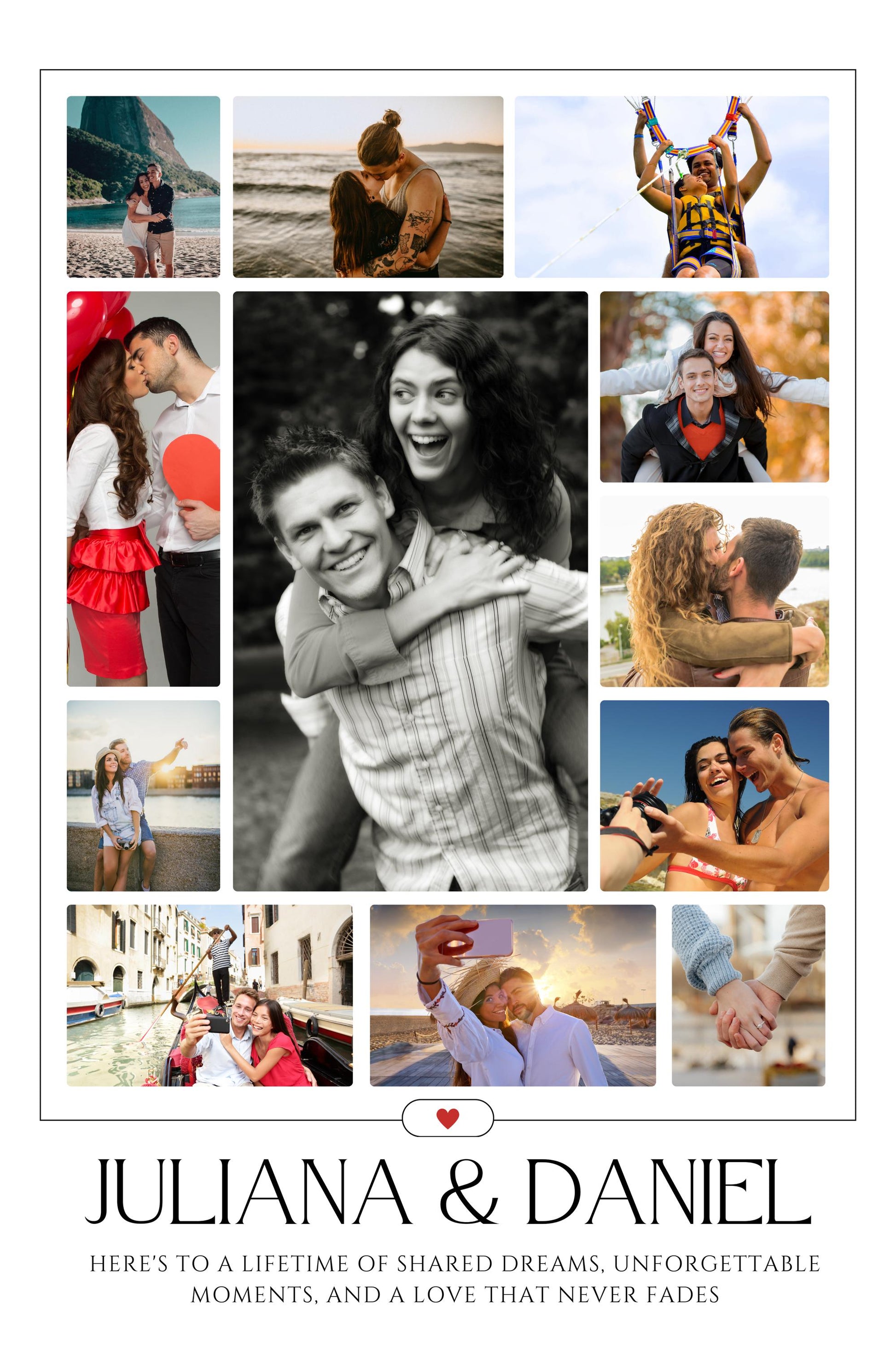 Memories are timeless treasures that hold a special place in our hearts. Whether you're celebrating a birthday, Mother's Day, Father's Day, Valentine's Day, Christmas, or simply want to highlight your favourite memories, our personalized photos are an ideal choice. Nothing expresses "I love you" quite like a collage featuring your most treasured moments, complete with personalized text and dates. Available in both black and white or colour. Please note frames are NOT included.
